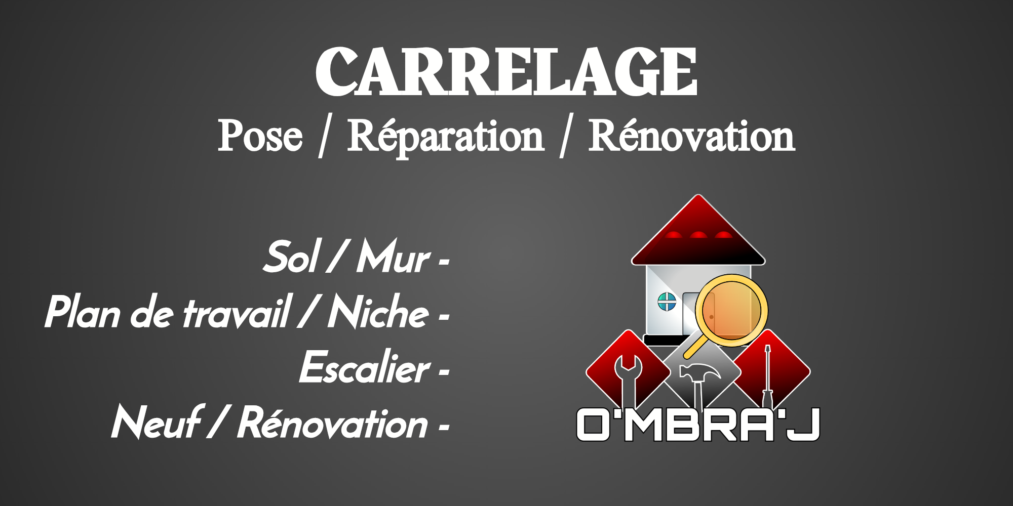 Découvrez O’MBRA’J (EI), votre artisan de confiance spécialisé dans les projets multiservices et rénovations BTP complets. Avec une expertise en plomberie, carrelage, bricolage, menuiserie agencement, maçonnerie second-œuvre, décoration d’intérieur*, planification et gestion de projets "TCE", nous offrons un travail de haute qualité adapté à vos besoins.